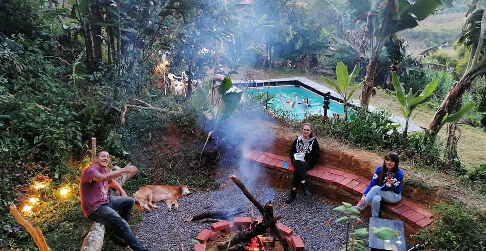 * Cabaña con Balcón, para 6 personas. Baño privado, hamaca, vista a la piscina, al jardín y a las montañas. 2 Camas Dobles, 1 Camarote (semidoble abajo). $62.000 x persona. Se alquila a partir de 4 cupos. Se puede extender a 7 personas. El cupo extra cuesta $30.000